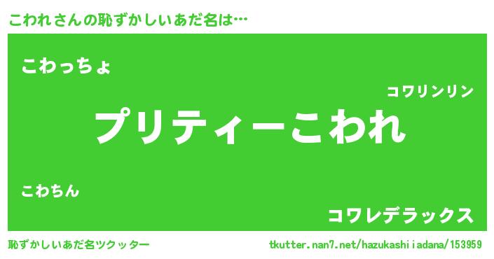 | ファンタジー風あだ名 | 『コワフェル』『エターナルコワレー』 |