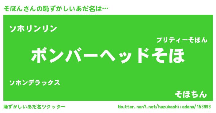 | ヘコむあだ名 | 『そほっちょ』『そほん(苦笑)』 |