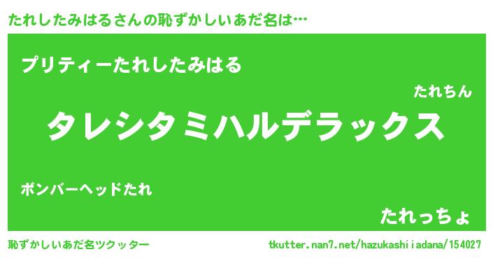 | 意味不明あだ名 | 『自称たれしたみはる』 |