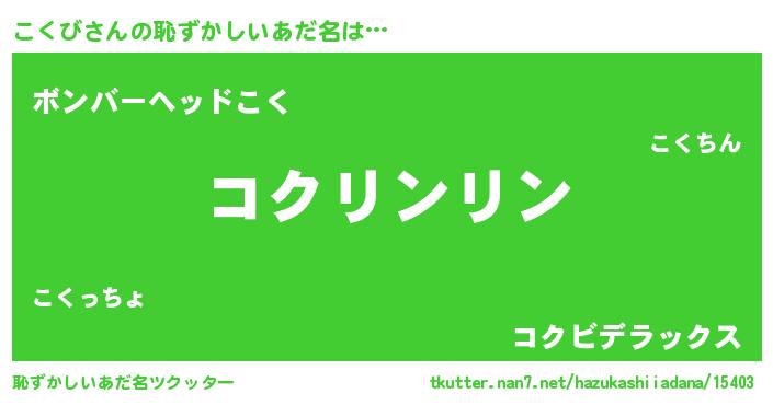 | 意味不明あだ名 | 『とにかく怪しいこくび』『自称こくび』 |