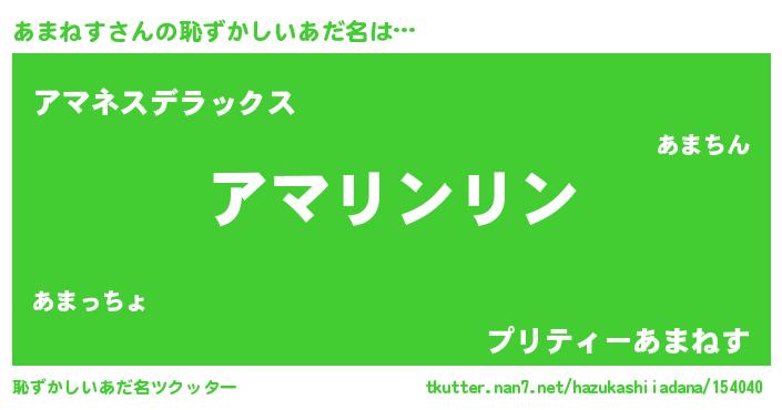 | 欧米人風あだ名 | 『アンジェラ・あまねす』 |