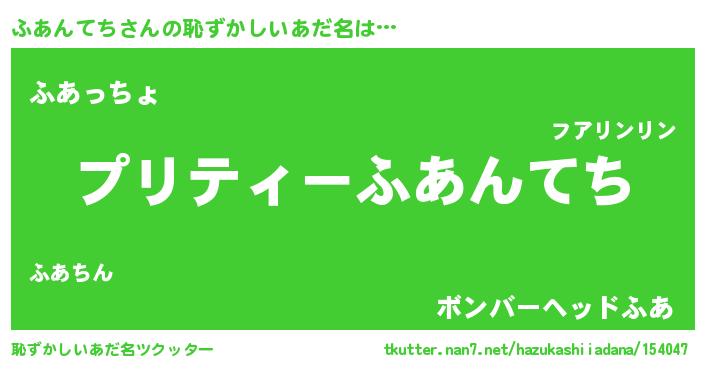 | 意味不明あだ名 | 『住所不定無職ふあんてち(56歳)』 |