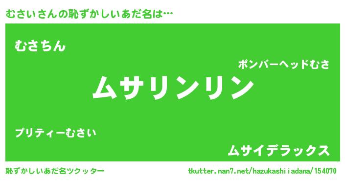 | ヘコむあだ名 | 『むさお』『むさい(笑)』『つくし』 |