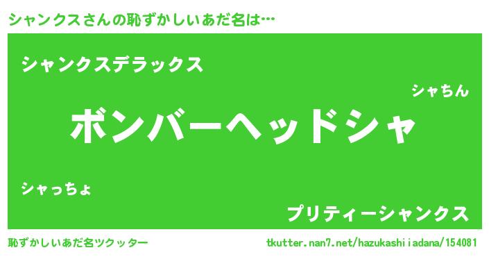 | ヘコむあだ名 | 『シャにー』『シャンクス(笑)』 |