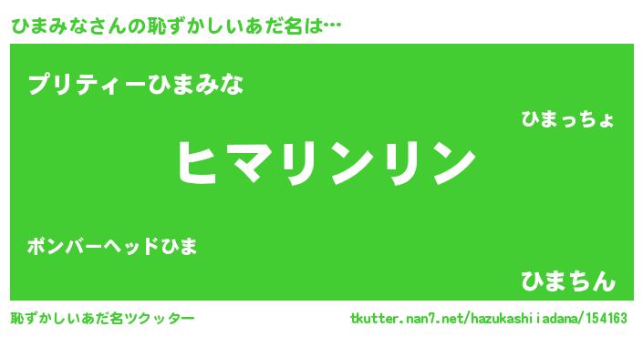 | 意味不明あだ名 | 『とにかく怪しいひまみな』 |