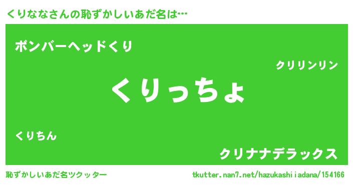 | ヒーロー風カッコイイあだ名 | 『ウルトラくりななマン』『仮面クリダー』 |