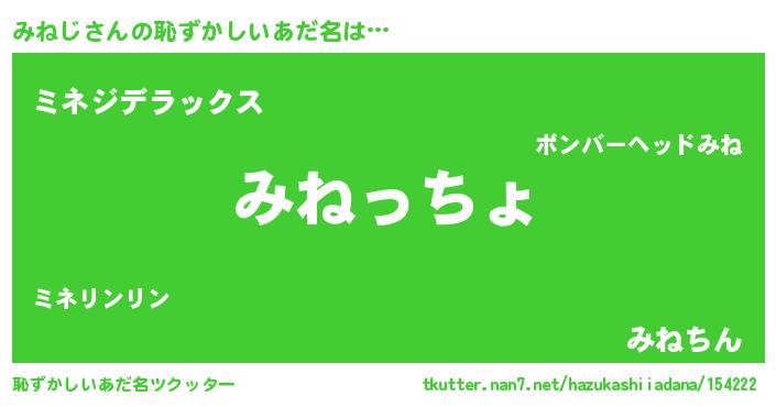 | ポケモン風あだ名 | 『ミーネイ』『ミネジダネ』 |