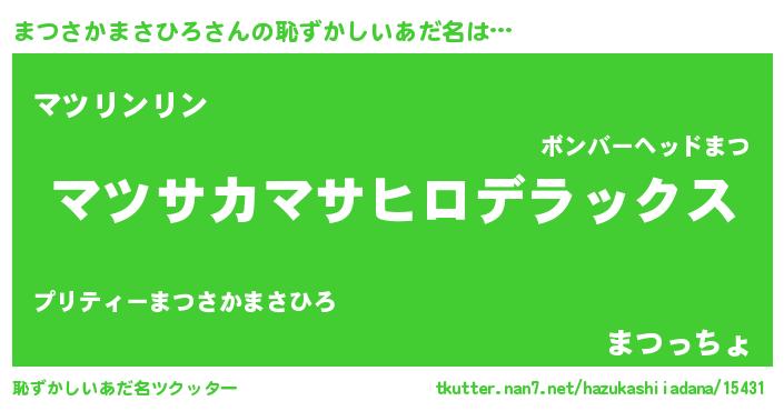 | 女子向けラノベタイトル風あだ名 | 『まつさかまさひろなんてお断りですっ。』 |