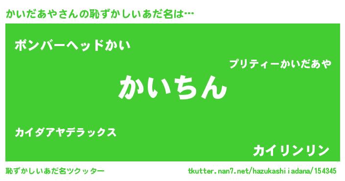 | ヘコむあだ名 | 『かいだあや(苦笑)』『かいっぺ』 |