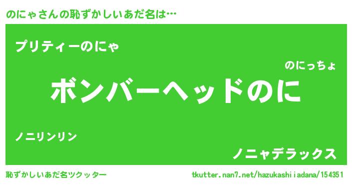 | 男性向けラノベタイトル風あだ名 | 『ノーゲーム・ノーノニャ』 |