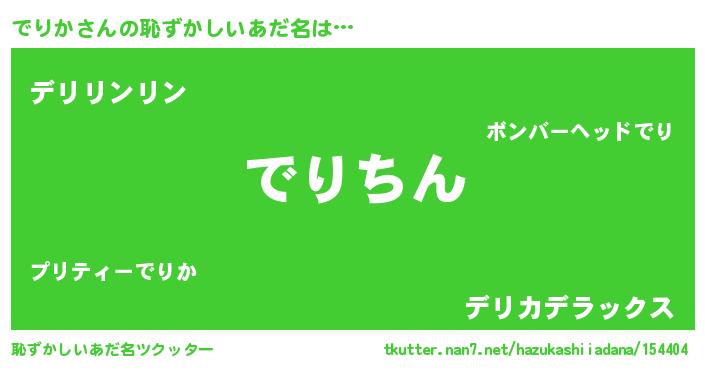 | 意味不明あだ名 | 『永久保存でりか』『自称でりか』 |