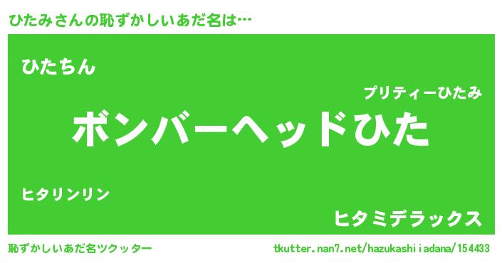 | ヒーロー風カッコイイあだ名 | 『正義の使者ひたみ』『ネオヒタミ』 |