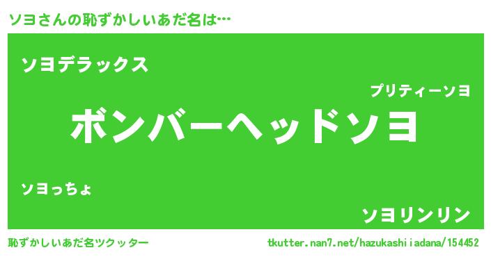 | 意味不明あだ名 | 『眠気覚ましガムソヨ味』『自称ソヨ』 |