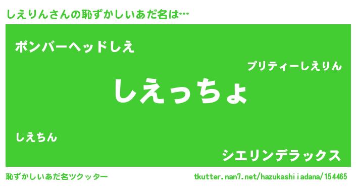 | 女子向けラノベタイトル風あだ名 | 『しえりんの雑貨屋さん』『闇のしえりん』 |