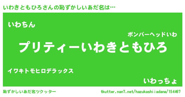 | ヘコむあだ名 | 『いわにゅー』『いわきともひろ(爆)』 |