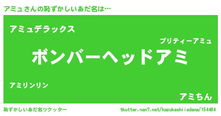 | ヘコむあだ名 | 『アミュ(小並感)』『アミっふぃ~』 |