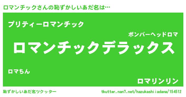 | 意味不明あだ名 | 『自称ロマンチック』 |