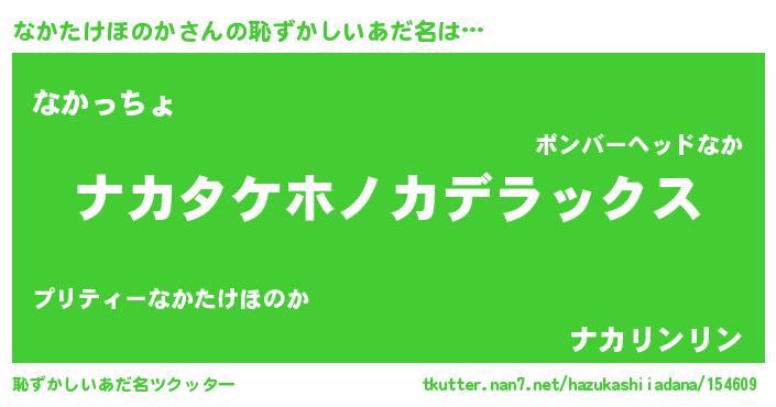 | 男性向けラノベタイトル風あだ名 | 『Re:なかたけほのかから始める異世界生活』 |