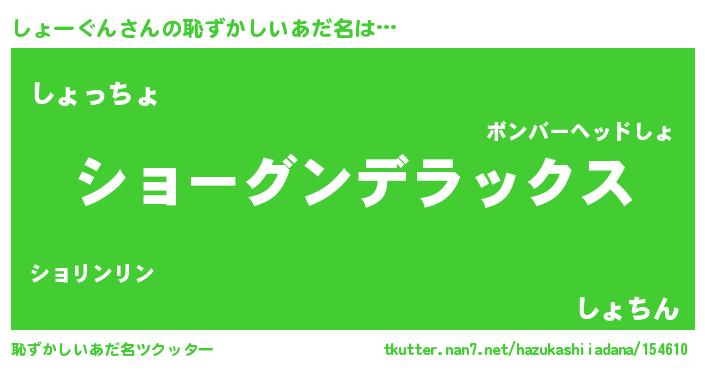 | ヒーロー風カッコイイあだ名 | 『仮面ショダー』『最強戦士ショーグン』 |