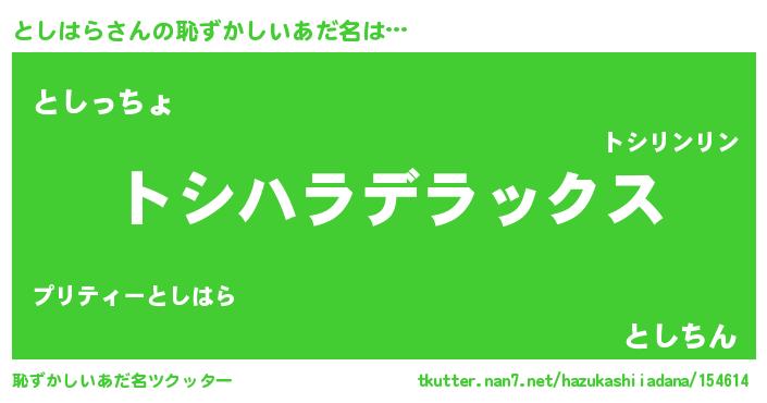 | 欧米人風あだ名 | 『としはら・ステッグマイヤー』 |