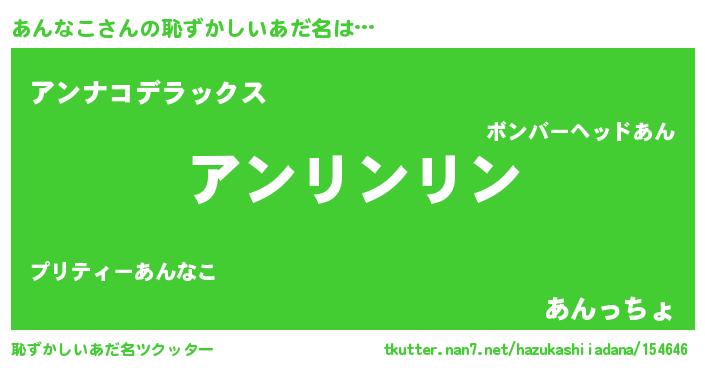 | ヒーロー風カッコイイあだ名 | 『天弓騎士アン』『超時空戦士アンナコ』 |