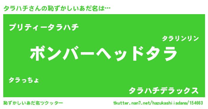 | ヒーロー風カッコイイあだ名 | 『正義の使者タラハチ』『暗黒騎士タラ』 |