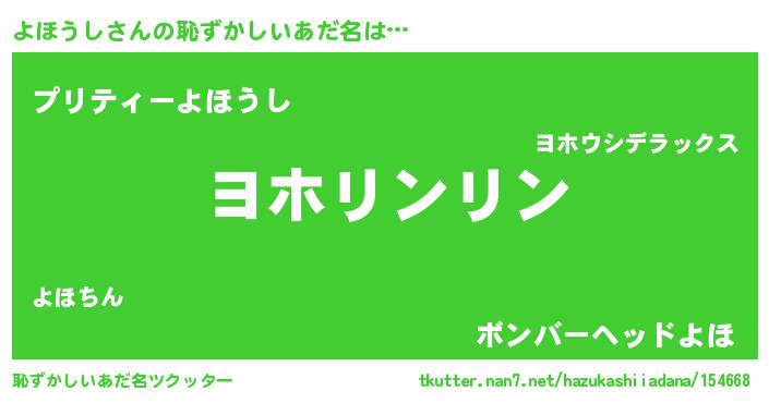 | ヘコむあだ名 | 『よほお』『よほもー』『レバニラ』 |