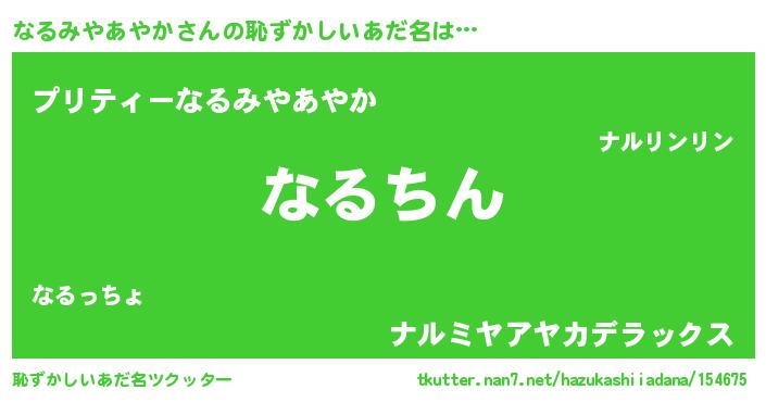 | ヘコむあだ名 | 『なるみやあやか(遠い目)』『なるっふぃ~』 |