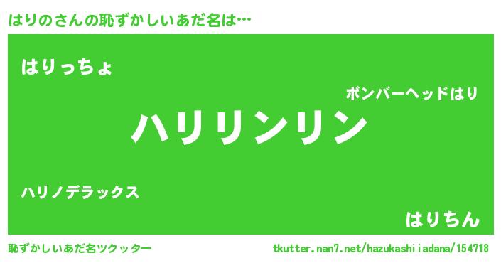 | ポケモン風あだ名 | 『ハーリイ』『ハリキング』 |