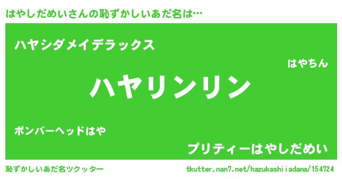 | ヒーロー風カッコイイあだ名 | 『天弓騎士ハヤ』『スーパーハヤシダメイ』 |