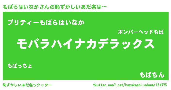| ヘコむあだ名 | 『もばもー』『もばらはいなか(遠い目)』 |