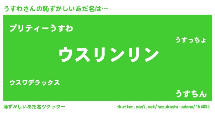 | 女子向けラノベタイトル風あだ名 | 『うすわは平凡を望む』 |