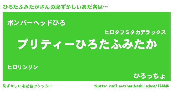 | ヘコむあだ名 | 『ひろにー』『牛乳』『ひろ太郎』 |