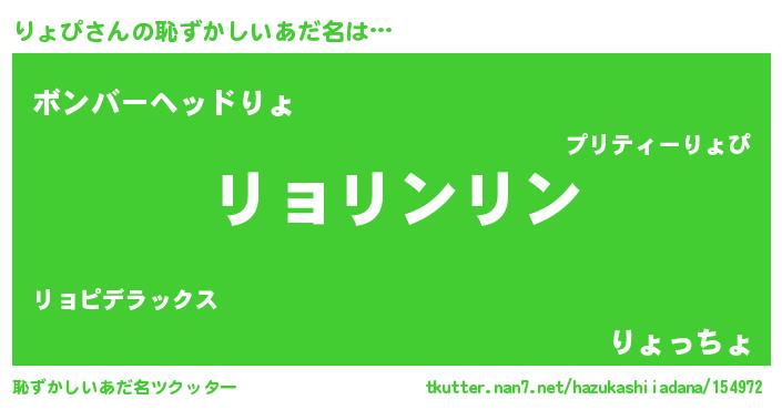 | ヘコむあだ名 | 『りょっぺ』『なまこ酢』『りょもー』 |