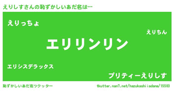 | 意味不明あだ名 | 『とにかく怪しいえりしす』 |