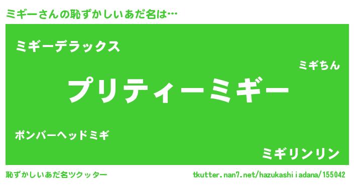 | ヒーロー風カッコイイあだ名 | 『スーパーミギー』『最強戦士ミギー』 |