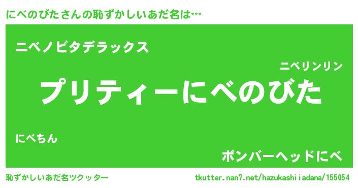 | 意味不明あだ名 | 『ペロリンにべのびた』『自称にべのびた』 |