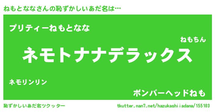| 意味不明あだ名 | 『住所不定無職ねもとなな(11歳)』 |