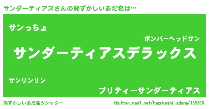 | 男性向けラノベタイトル風あだ名 | 『この素晴らしい世界にサンダーティアスを!』 |