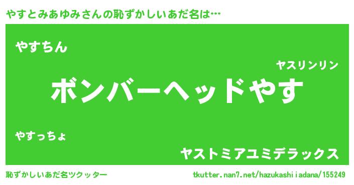 | ヘコむあだ名 | 『やすとみあゆみ(爆)』『やすっぺ』 |