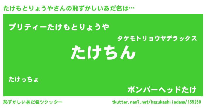 | 意味不明あだ名 | 『永久保存たけもとりょうや』 |
