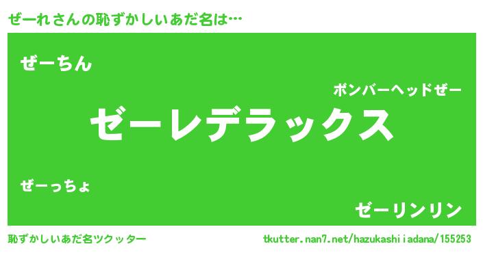 | 意味不明あだ名 | 『なめこ科ぜーれ属』『自称ぜーれ』 |