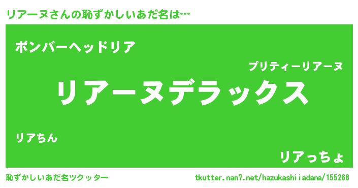 | ヘコむあだ名 | 『レバニラ』『リアもー』『リアを』 |