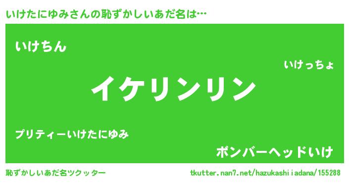 | 男性向けラノベタイトル風あだ名 | 『いけたにゆみの嫁は女の子じゃないと思った?』 |