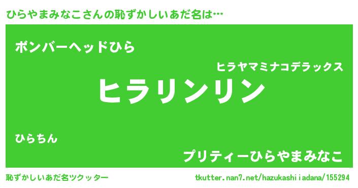 | ポケモン風あだ名 | 『ヒヒラヤマミナコ』『ヒックウザ』 |