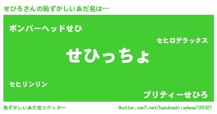 | 意味不明あだ名 | 『せひろフォーエバー』『ペロリンせひろ』 |