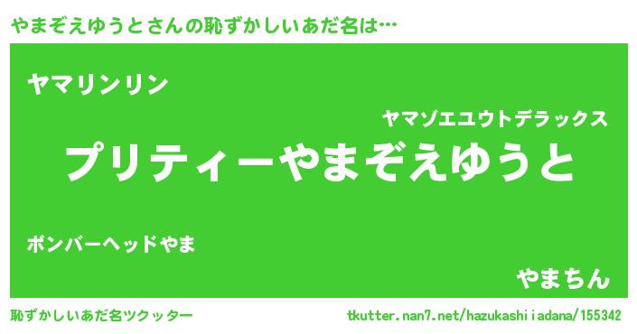 | 男性向けラノベタイトル風あだ名 | 『転生したらやまぞえゆうとだった件』 |
