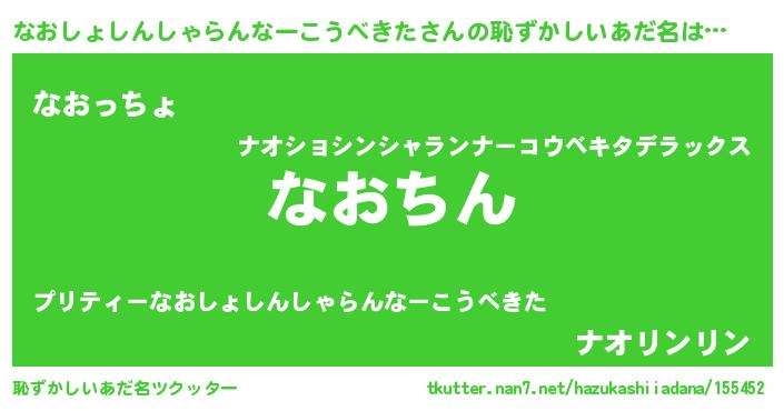| ヘコむあだ名 | 『なおしょしんしゃらんなーこうべきた(笑)』 |