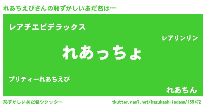 | 意味不明あだ名 | 『住所不定無職れあちえび(71歳)』 |
