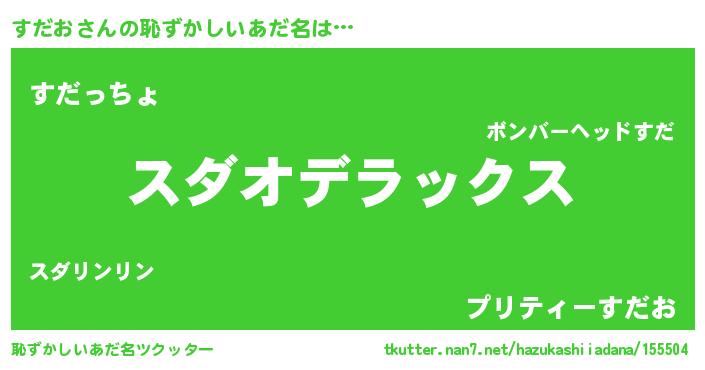 | 男性向けラノベタイトル風あだ名 | 『すだおに滅ぼされるだけの簡単なお仕事です』 |